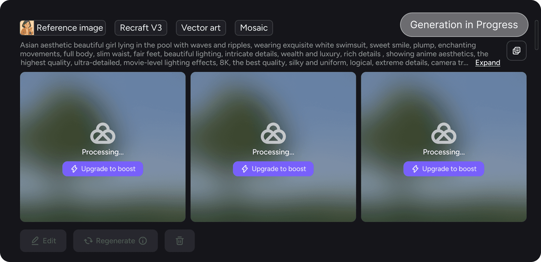 Includes processing generation, generation failure, and safety-blocked scenarios during image creation.